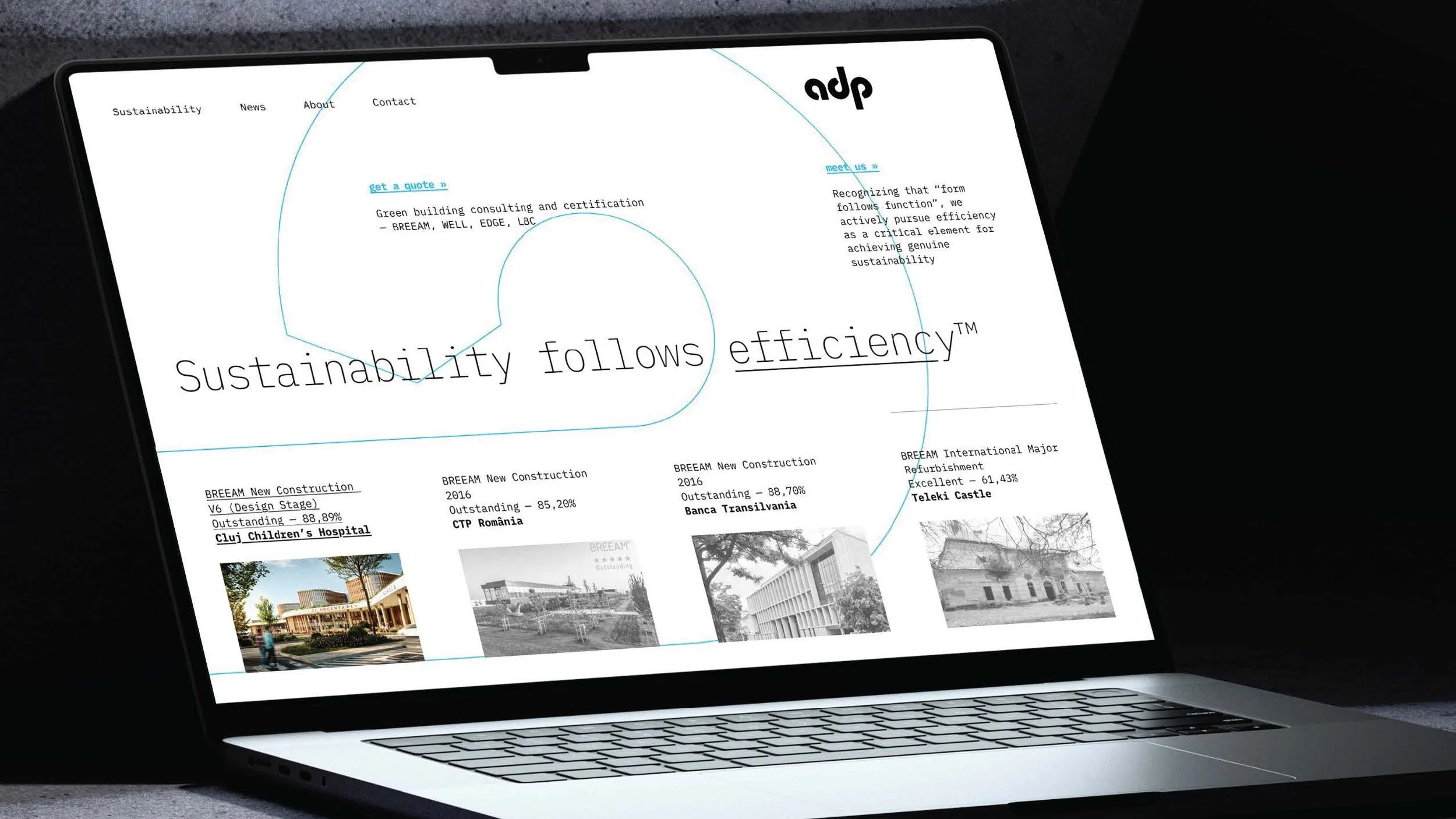 Practically, efficiency becomes the essential word and the conceptual umbrella of this brand. This makes our work easy from both a communication perspective and an internal organization perspective. The tagline “Sustainability follows efficiency™” thus powerfully communicates ADP’s core philosophy and their unique approach to delivering sustainable solutions in the built environment.